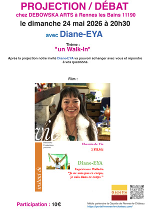 Projection/débat avec Diane-EYA chez DEBOWSKA ARTS à Rennes les Bains 11190 le dimanche 24 mai 2026 à 20h30